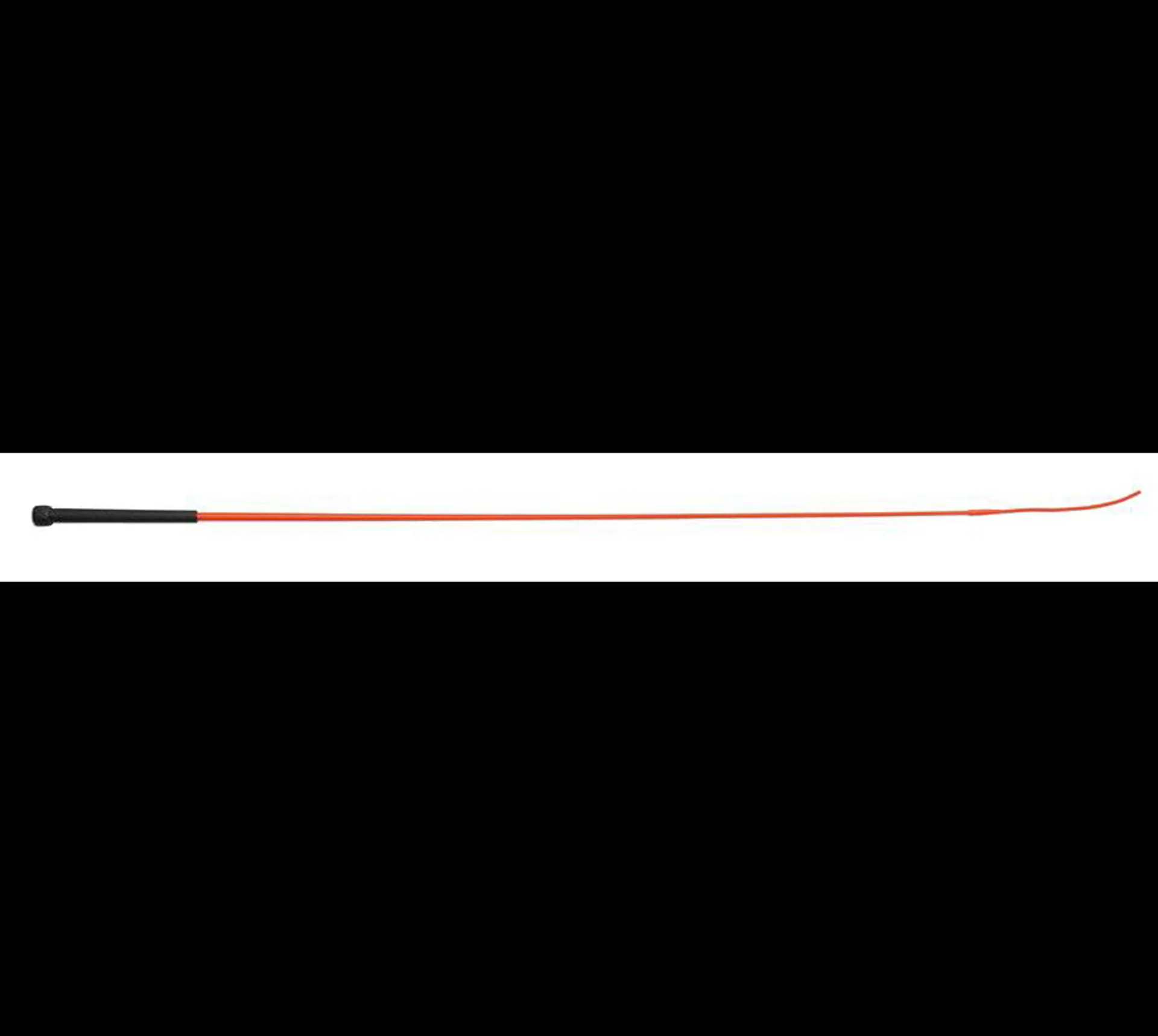 Smart schooling whip.Ideal for day-to-day use, but smart enough to use at shows. A thread covered stem with a plastic handle.