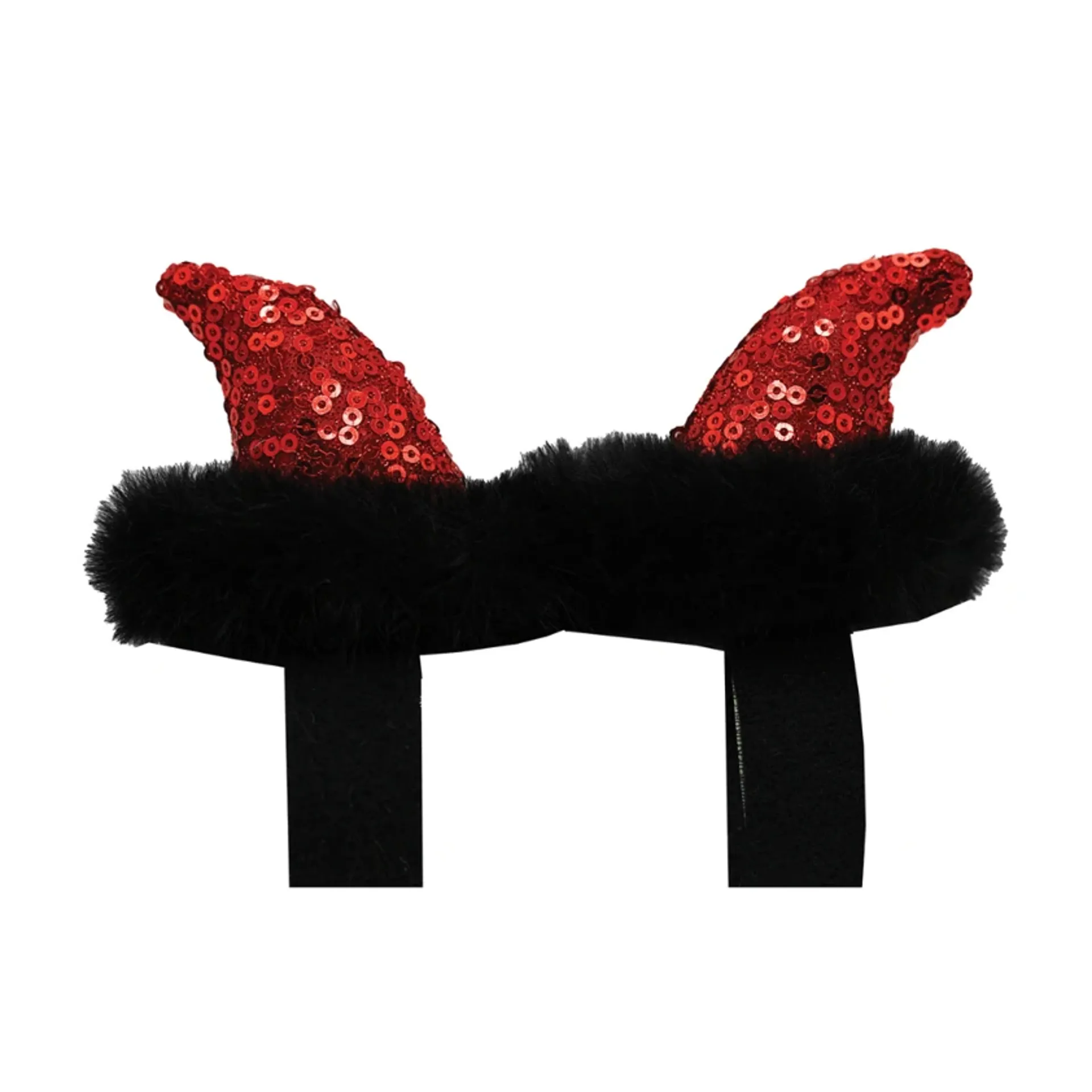 Limited edition glitter Devil horns in Red designed specifically for your horse's bridle! Perfectly suitable for both standard and anatomical headpieces, these horns come with convenient Velcro attachments for easy application. This Halloween, elevate your horse's costume to new devilish heights by adding these unique spooktacular glitter Devil horns! Order your limited edition glitter Devil horns today and let your horse shine with devilish charm. Devil hat silk also available. Supplied in pairs. 100% Polyester.